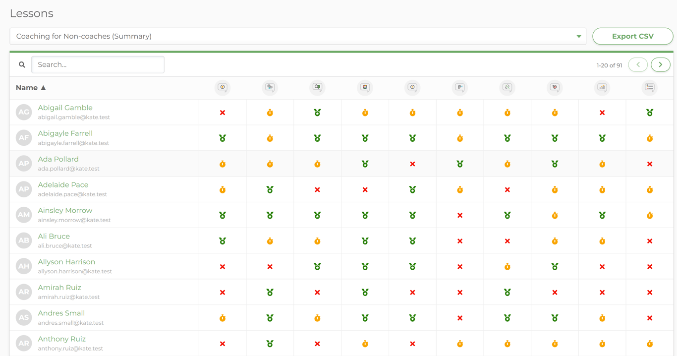 Reports allow you to track progress and see users started and completed status.