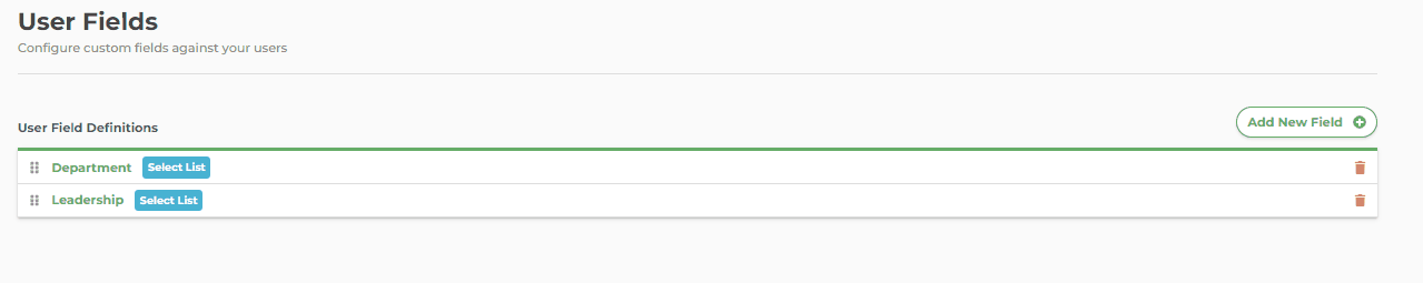 - Select List - Use this for departments, locations etc for example. This is the most powerful user field and can be used to filter insights and reports.